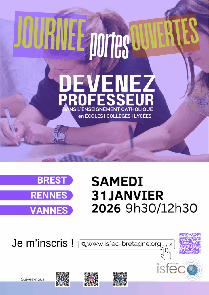 L’ISFEC, Institut supérieur de formation de l’Enseignement catholique, propose un cursus spécialisé pour se former au concours et au métier www.isfec-bretagne.org.